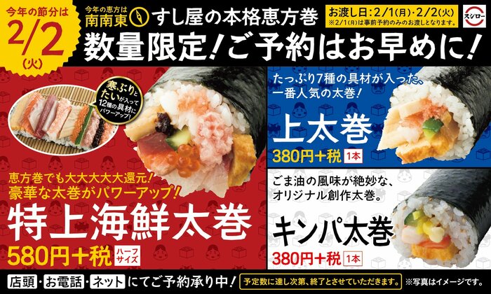 そんなスシローから、今年も恵方巻のラインナップが発表・予約が開始されました。家族で楽しむのにぴったりな豪華な恵方巻は2021年2月1日・2日の2日間限定で全国のスシローにて販売されるそうです。