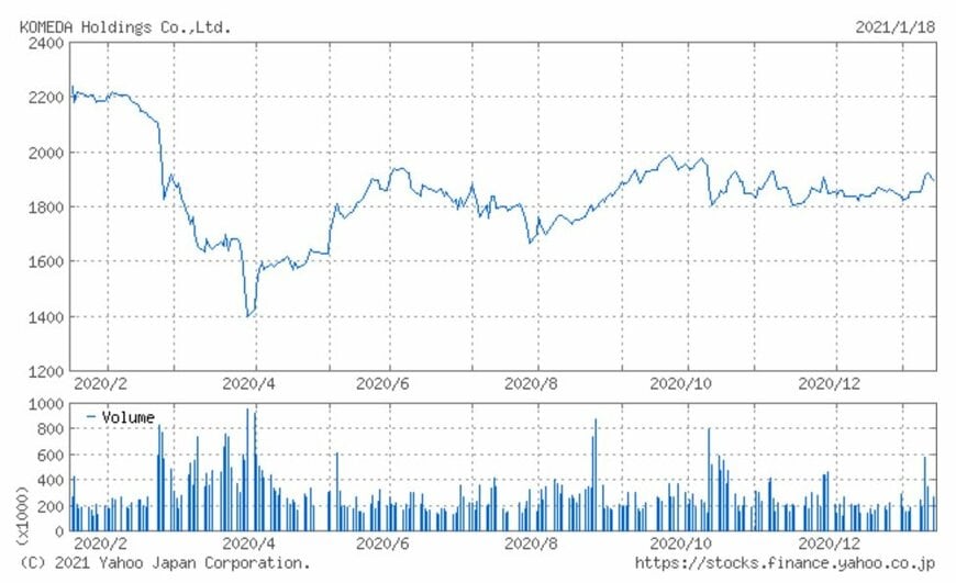 シリーズでお伝えしている「注目小売店月次実績」。今回はコーヒーチェーン店「コメダ珈琲」を運営するコメダHD(3543)の2020年12月の月次動向及び過去実績、また過去1年の株価動向について振り返ってみましょう。