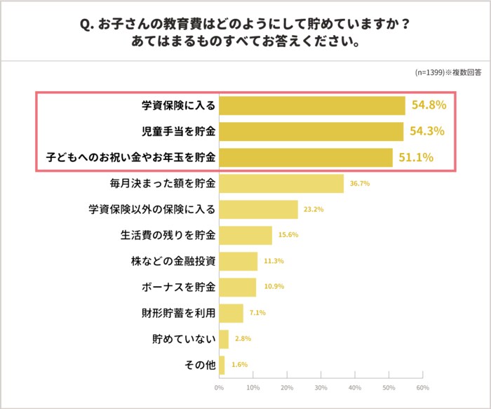 学資保険・児童手当・お祝い金でお金を貯めた人が50%以上