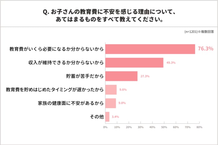 76.3%のママが「教育費がいくら必要になるか分からないから不安」