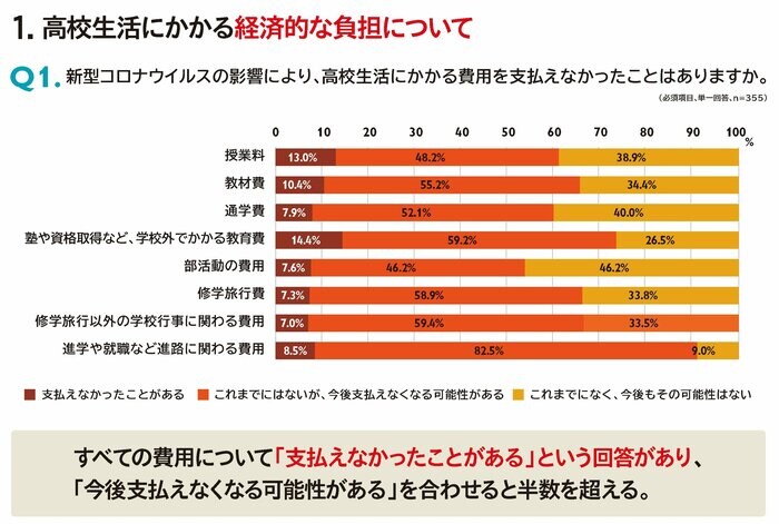 都内高校生の半数以上が「高校生活の費用を支払えなくなるかもしれない」