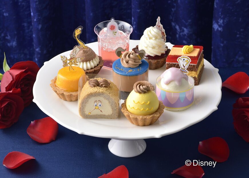 『美女と野獣』の舞踏会のシーンをイメージしたプチケーキが9個セットになっています。プリンセスのベルは、黄色のドレスをイメージしてレモン風味のタルトに、野獣はチョコムースのケーキになっています。9種類もあると、どれを食べようかなと迷ってしまいそうです。