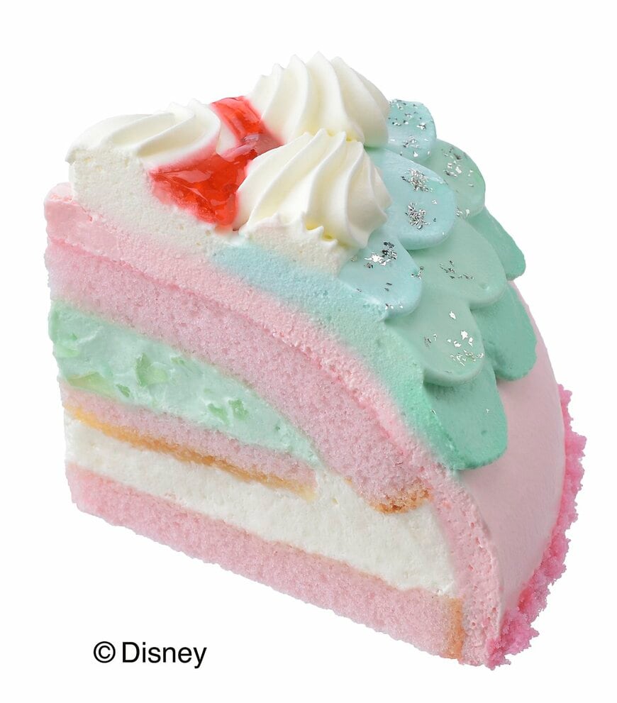 ディズニープリンセスの1人、アリエルが登場する『リトル・マーメイド』の世界をデザインしたデコレーションケーキです。春のひなまつりにふさわしい、とても優しい色合いです。味は青りんご風味。『リトル・マーメイド』ということもあって、海をイメージしたほんのり塩味を感じる塩レモン風味のクリームを使っています。