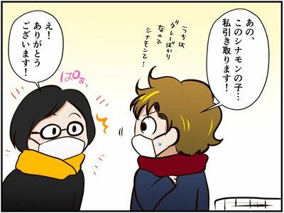 「しかし、さすがに慣れているといっても、3匹は難しい…。でも小明神さんも亡くなってしまった今、1匹なら…。うちは環境も整っているし、きっと幸せにしてあげられる。大丈夫、できる!」心を決めた祭さんは「このシナモンの子、私が引き取ります。」と、チンチラ仲間さんに申し出たのでした…。