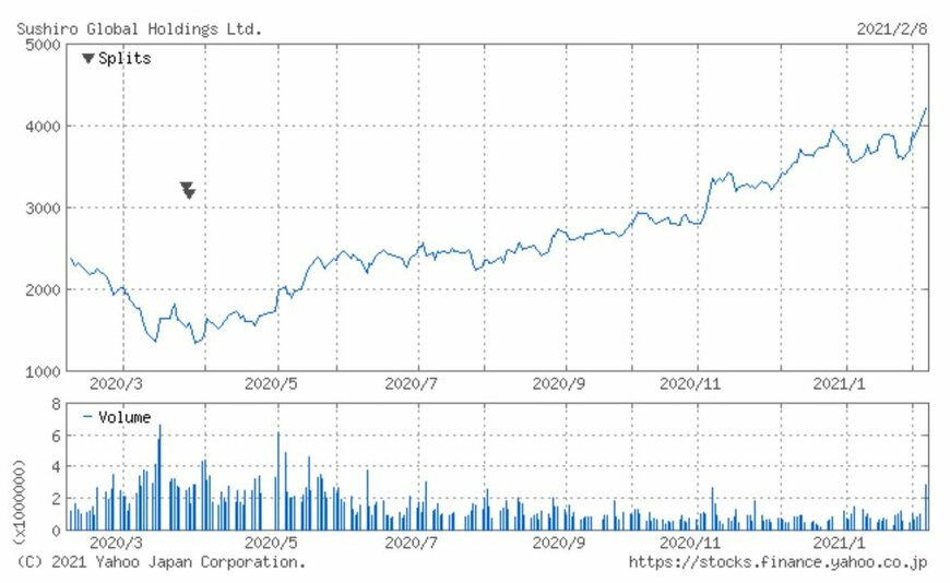 シリーズでお伝えしている「注目小売店月次実績」。今回は回転寿司チェーン店「スシロー」を運営するスシローグローバルHD(3563)の2021年1月の月次動向及び過去実績、また過去1年の株価動向について振り返ってみましょう。