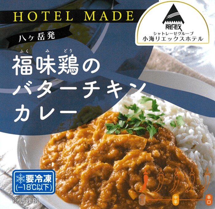 素材を引き立てるスパイスと、信州の平飼鶏舎で飼育されたジューシーな「福味鶏」を使用。シャトレーゼが使用するバターとはちみつを加えているため子供でも安心して味わえる甘口カレーです。
