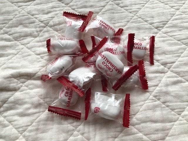 まずはチョコ入りのマシュマロ『チョコマシュマロ』((株)エイワ)です。11個入っていました。