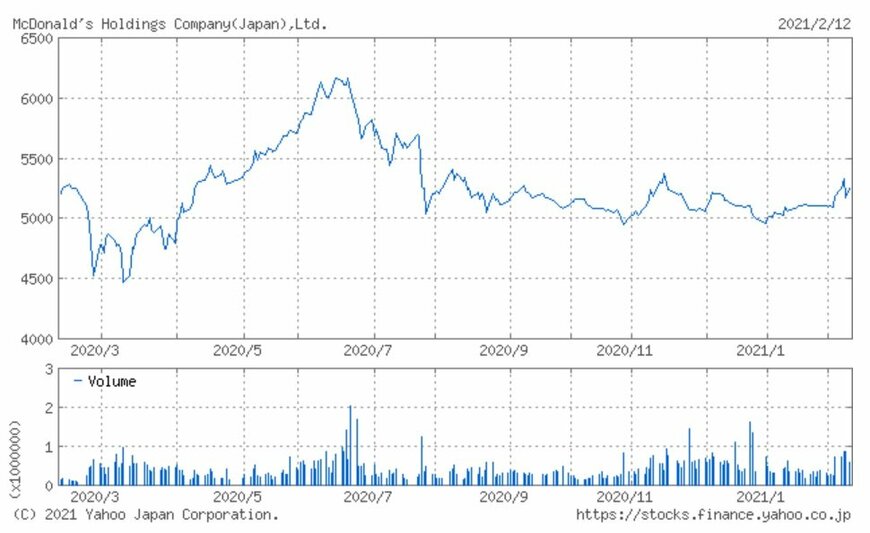 シリーズでお伝えしている「注目小売店月次実績」。国内でハンバーガーチェーン店「マクドナルド」を運営する日本マクドナルドHD(2702)の2021年1月の月次動向及び過去実績、また過去1年の株価動向について振り返ってみましょう。