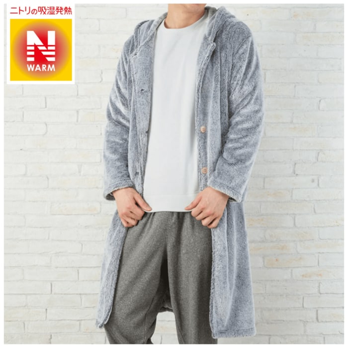 ニトリ公式通販【着る毛布ミドル(Nウォームo-iフードGY)】2990円(税込)