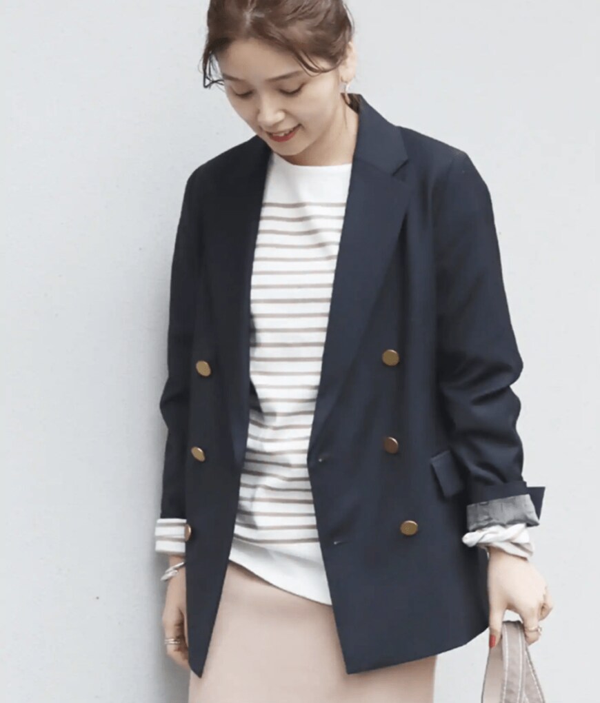 どんなコーデにも合わせやすく、オンオフ活躍する「買って間違いない」紺ブレは今っぽ見えするボクシーシルエットに更新を。金ボタンがコーデ全体に華やかさと上質感をプラス。フェミニンコーデの引き締めスパイスとして、カジュアルコーデをキリッと大人っぽく見せてくれます。着こなしの汎用性の高さはNo.1です!