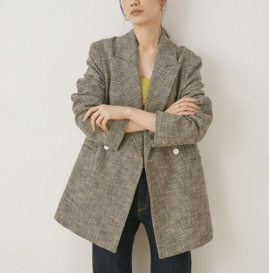 モードな印象が漂う千鳥柄ジャケットは、ゆったりメンズライクなシルエットが今っぽい! しっかりとした生地感で形崩れしにくく、オーバーサイズでもスッキリとしたシルエットをキープしてくれます。あえてのホワイトボタンもアクセントになっていてかわいい!