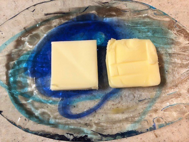 やはり比べないとわからないと思って、通常のバターと並べてみると(写真参照)、