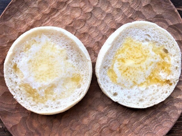 カルピスバターと普通のバターの味を比べてみます。パンの上に1切れ乗せてトースターで焼いてみました(写真参照)。
