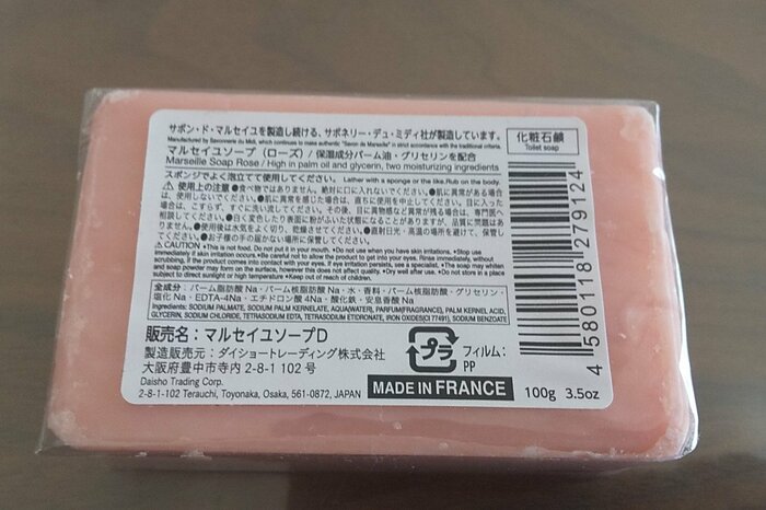 ダイソーでは過去にもこの「マルセイユ石鹸」を発売し、大人気になったことがありました。こちらの商品は「サボン・マルセイユ」を製造し続けるサボネリー・デュ・ミディ社が製造しています。今回も歴史ある会社が製造した石鹸が税別100円で購入できるとあり、「マルセイユ石鹸」4種が発売されるとSNSなどを中心に再び話題になり、ダイソーへ走る人の姿が見受けられました。筆者は「ローズ」を使用してみましたが、ふんわりと香るローズの匂いに包まれながら、全身がさっぱりすべすべに洗いあがりました。