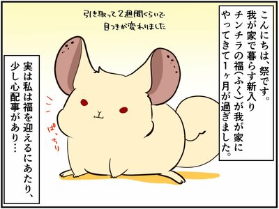 保護チンチラの福くんが祭さんの家にやってきて早1か月。ようやく警戒心が解けて、顔つきも穏やかに。しかし、彼を引き取るにあたり、祭さんにはとても心配なことがあったといいます…。