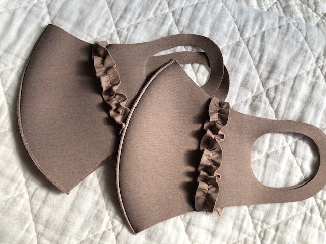 パッとみた感じ「あ、フリルが可愛い」と思ったマスクです。すごく派手なフリフリではなくて、ちょっと控え目。そんなところが大人っぽいですよね。筆者が選んだのはブラウン系ですが、他に黒とくすみピンク、グレーがありました。黒やグレーはシックなイメージ、くすみピンクは華やかな印象です。