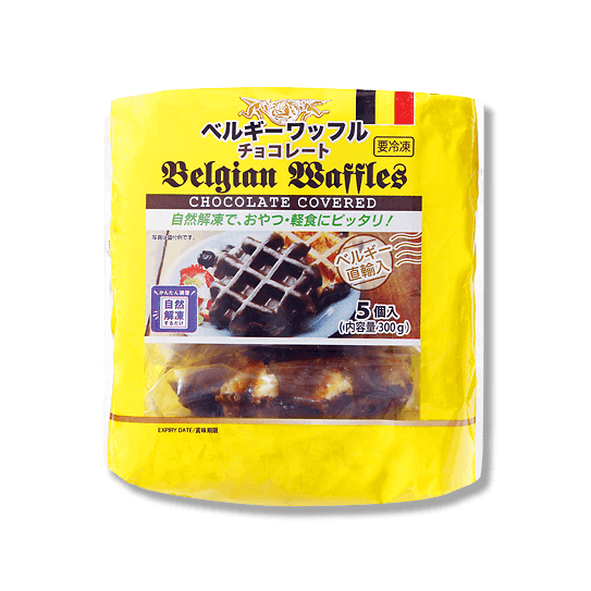 ベルギー直輸入のチョコのかかったワッフルです。自然解凍で食べられるので、朝食やおやつにもぴったり。少しだけレンジで温めてあげることでチョコが溶け、違った味わいが楽しめます。5個入りなので手軽に買えます。