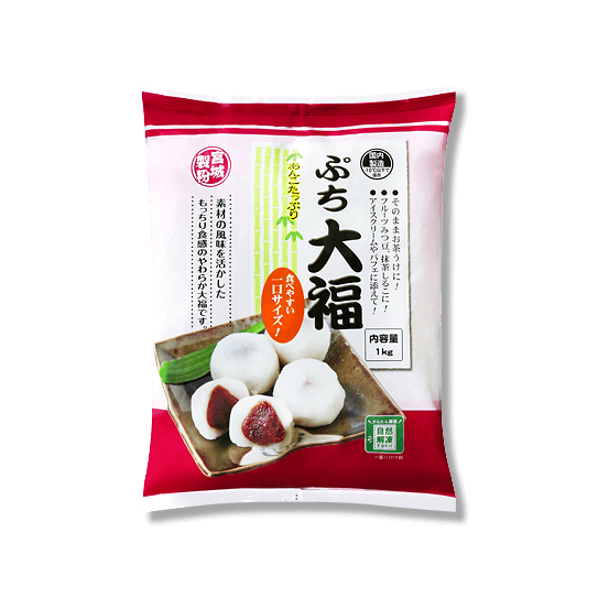 国内の自社関連工場にて製造。風味豊かに炊き上げたこしあんを、もっちりしたやわらかい餅で包み込んでいます。食べやすい一口サイズなので、お茶請けやおやつにぴったり。自然解凍後に包丁でカットしてフルーツを挟み、ジューシーなフルーツ大福にするなどアレンジいろいろ。
