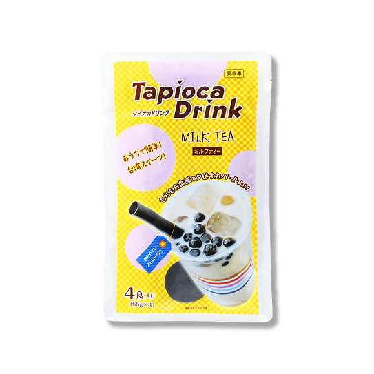 台湾から直輸入したもちもちとした食感がクセになる、冷凍タイプのタピオカドリンク(ミルクティー)です。タピオカドリンク用ストローもついていて、1袋4食入りです。湯煎調理して、牛乳と氷を混ぜるだけで本格的な美味しさがお楽しめます。黒糖や抹茶などを加えるのもおすすめです。