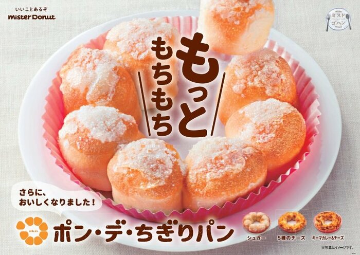 そんなミスドでは、幅広い時間帯に楽しめる軽食向けメニュー「ミスドゴハン」を2017年からスタート。これまでもパイやホットドッグといった食事メニューを展開してきました。「ポン・デ・ちぎりパン」は、2020年のスタートより多くの人に親しまれているメニューです。今回、「ポン・デ・ちぎりパン」のもちもち食感がさらにアップし、3つのメニューとなって登場。早くもSNSを中心に話題となっているようです。