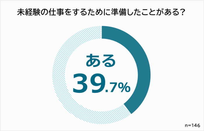 「未経験の仕事へ転職するために準備したことはありますか?」と聞いたところ、「ある」と回答した方は39.7%に留まりました。