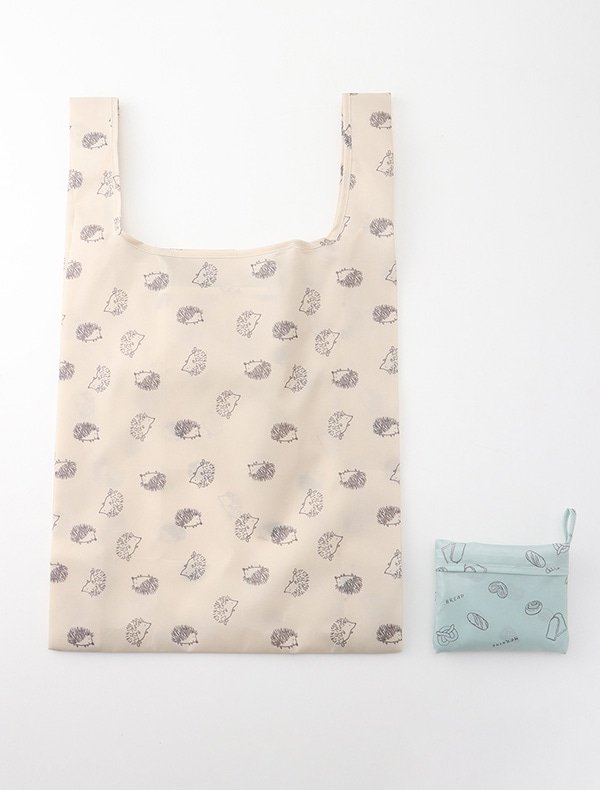 使わない時は折り畳んで内側のポケットに収納できるので、使いやすく持ち歩きにも便利です。人気のパステルカラーは、ブレッド柄とハリネズミ柄の可愛らしいデザインが魅力。また、ロゴタイプのくすみカラーなどファッションなどにも合わせやすいです。