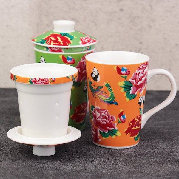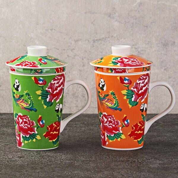 レトロな客家柄『オリジナル茶こし付きマグカップ』
