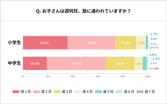 さて、塾通いの頻度はどのくらいなのでしょうか。「お子さんは週何日、塾に通われていますか?」と質問しました。