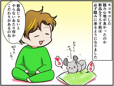 さて一方、母になっても、少女のような愛くるしさのおみくじちゃん。彼女にもまたお気に入りの手触りのモノがあります。それは、拭き掃除をした後のフローリング。ちょっとだけ水気が残っている床の、ペタペタとした感じが好きらしく、お散歩のたびに乾ききっていない床を見つけては、トトトト、トトトト、二足歩行で楽しんでいます。