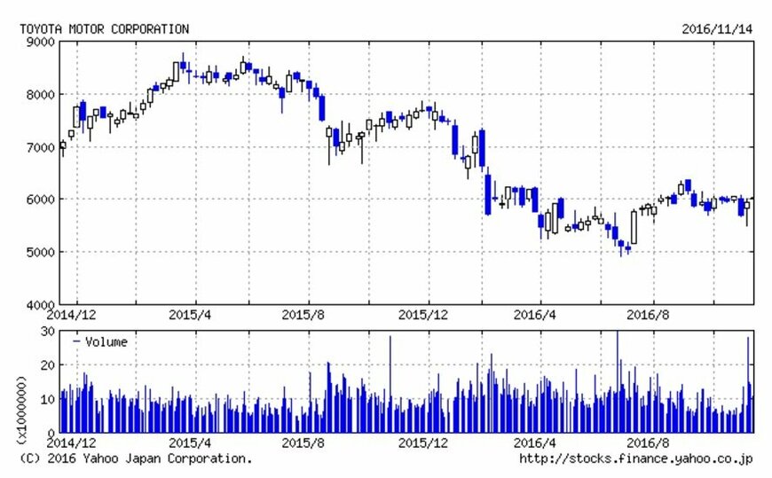 まず、トヨタは2017年3月通期の業績予想を上方修正しましたが、それでも、上方修正後の営業利益は対前期比▲40%減の大幅減益になる計画です。確かに、上方修正は好印象ですが、一方で、“それでも▲40%減益か”という懸念もあるでしょう。こうした冷静な見方が株価に影響していると考えられます。