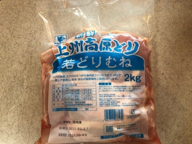 とり肉は業務スーパーでよく売れているようで、天然酵母食パン同様に、午後には売り切れてしまうことも少なくありません。(そのため筆者は、とり肉を買う時には午前中に行っています)その中でむね肉は、2kg入りで値段が950円(税込み)。100g換算では約48円です。ただ2kg入りなので、一気に使い切るのは難しいです。冷凍庫にどのくらいのスペースがあればいいのかの判断にもなるのが、とり肉のいいところ。また国産なので、品質を確認するのもいいでしょう。