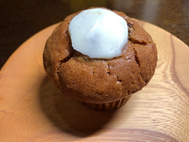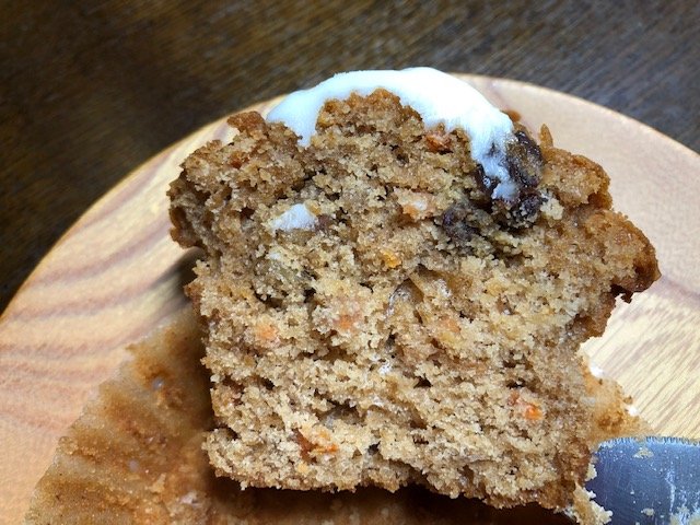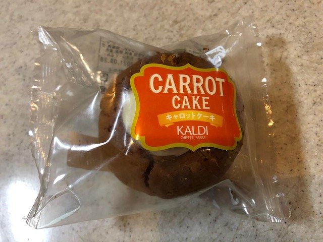 実はキャロットケーキはあまり存在が知られていないようなのです。何を隠そう、筆者自身、ちょっとノーマークでした。でもある日お店に行ったら、シナモンロールの隣に並んでいて……。「あれ?」と思って手に取ってみたら、「キャロットケーキ?」と。これは新しい発見ということで、早速買ってみました。お値段は243円(税込み)。筆者は1時間ほど自然解凍をした後に実食です。