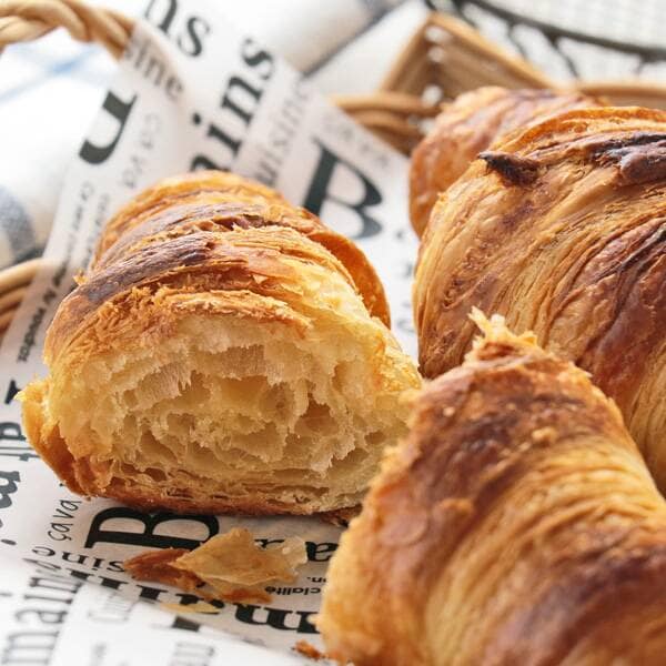 カルディで販売されている冷凍タイプのクロワッサンは、フランスの発酵バターを使ったこだわりの商品です。調理方法はとてもシンプル。凍った商品を袋から取り出し、十分に間隔を開けてオーブン皿に並べて、室温で20~30分程度解凍してあげます。その後、軽く押して生地が柔らかくへこむ程度になったら、余熱しておいた180℃のオーブンで25分程度焼いてあげると、クロワッサンが2.5倍くらいの大きさに焼きあがります。こちらの商品はホテルなどの業務用としても使用されているとのこと。