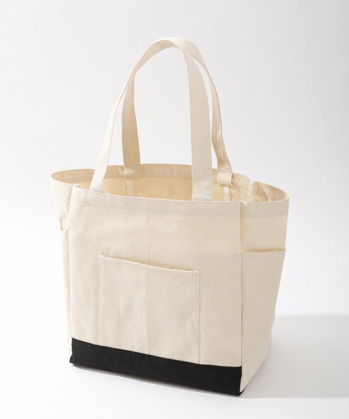 さらに、バッグの底の部分にはICカードなどを入れられるポケットが。バッグを改札で「ピッ」とするだけで移動もラクラクです。全体がキナリで優しい風合いな上、底部分だけブラックになっているため、汚れも目立ちにくいという配慮もうれしいですね。