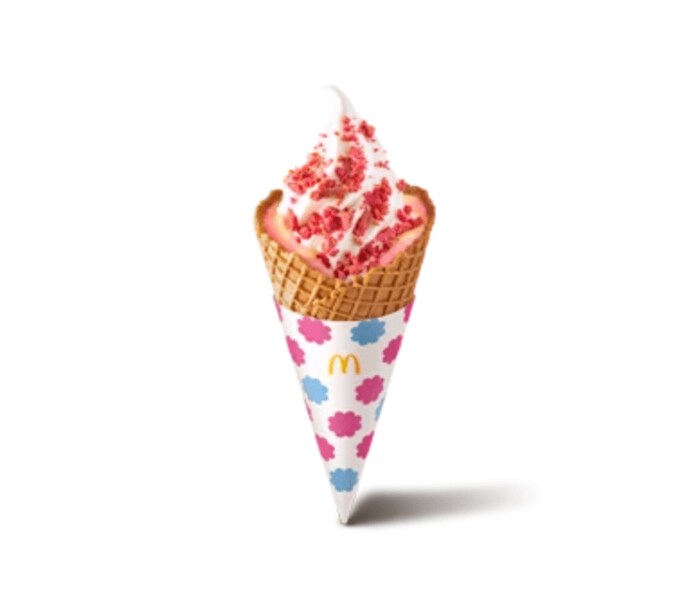 「マックシェイク® ミルキーのままの味」と「ワッフルコーン いちごミルキーのままの味」は期間限定での販売となります。マックシェイクはペコちゃんをあしらったかわいいオリジナルカップで提供、ワッフルコーンはお馴染みの花柄デザインのオリジナルパッケージで数量限定で登場です。どちらもあの味が見事に再現されており、期待が膨らみます。どちらも販売は朝10時30分から翌1時までなのでご注意を。