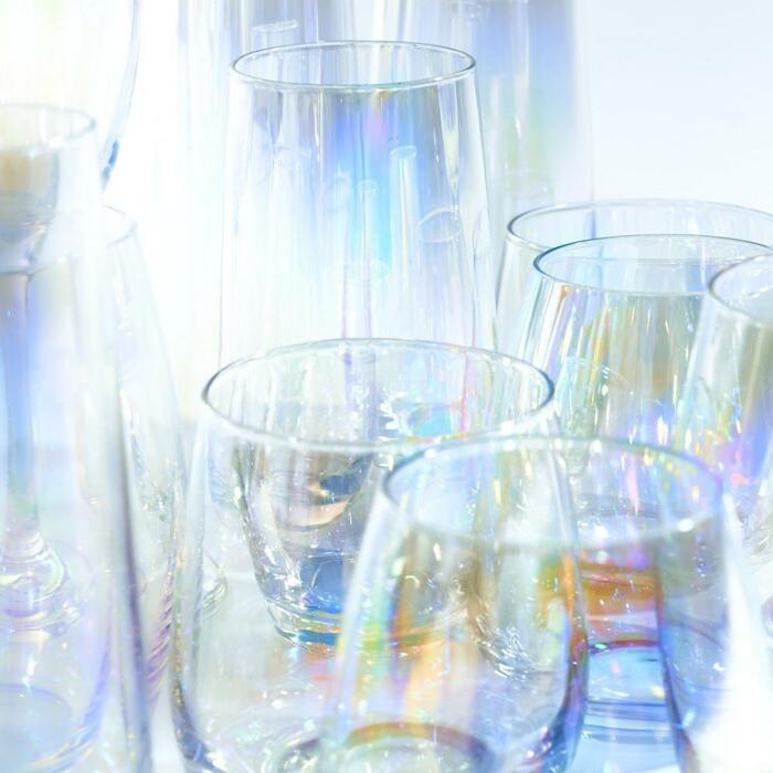 3COINSの大ヒット作『オーロラグラス』から限定のデザインが登場。光に当てると虹色に輝くオーロラグラスは中に入れるドリンクや角度によって表情が変わります。パフェやスイーツなどを入れても可愛いタンブラーやインテリアにもお使い頂けるトールグラスなどおうち時間を楽しむのにぴったりな5種類の限定デザインです。