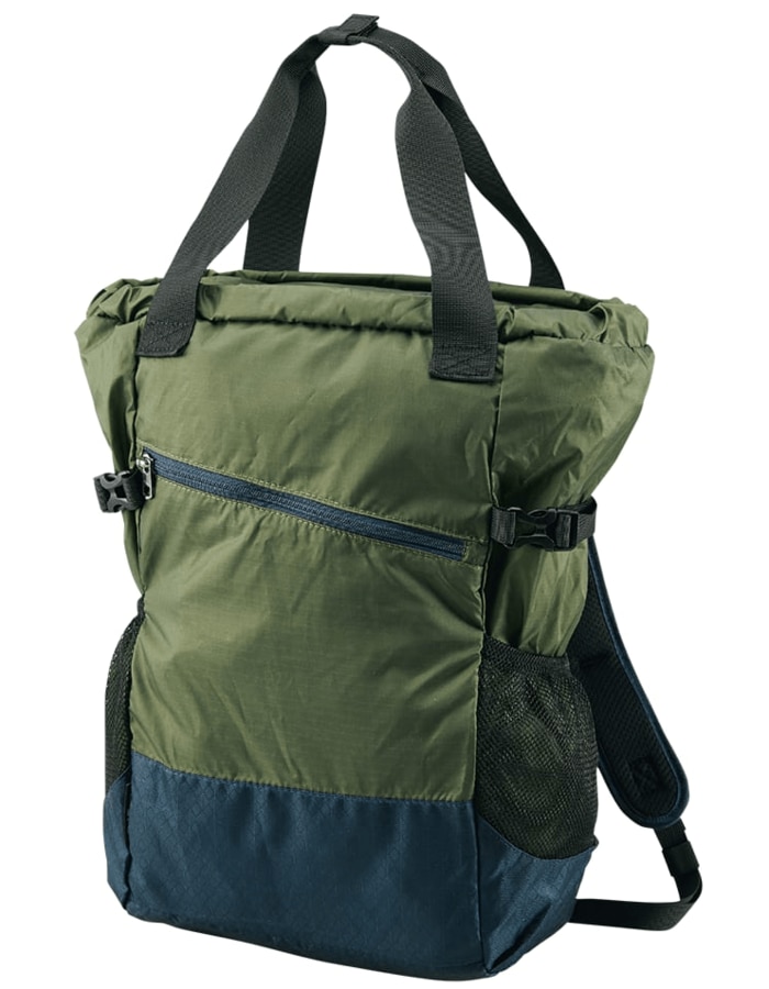 トートバックにもリュックにもなる、2WAYのポケッタブルバッグ。メディアでも注目されている大人気商品ですが、たたみ方にコツが必要なのと新品特有のきついにおいが残念ポイントのようです。