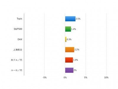 先週(11月21日‐11月25日)の世界の株式市場は総じて上昇しました。ラリー継続と言えそうです。週間騰落率は現地通貨ベースでTOPIXが+2.5%、米S&P500が+1.4%、独DAXが+0.3%、上海総合が+2.2%でした。