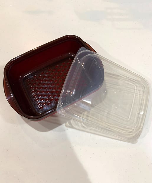 こちらも電子レンジだけで調理ができる便利グッズです。野菜を入れて数分加熱するだけで、ホクホクと甘い温野菜がつくれます。より落ち着いた色合いに変わって再入荷したことで、店頭でもオンラインでも飛ぶように売れているようです。そのまま食卓に出したり、保存容器やバットがわりにしたりと、マルチに使えるのもうれしいポイント。