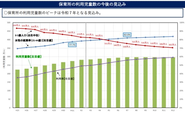 女性の就業率は今後も伸びる見込みに対して、なぜ2025年(令和7年)に利用児童数がピークを迎えるのでしょうか。