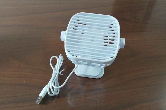 ダイソーのUSBに挿してクリップで挟める「ミニ扇風機」