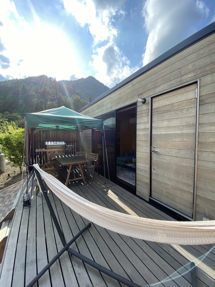 室内外設備:テーブル&チェア 、バーベキューグリル (ガス式)、2人用 ハンモック