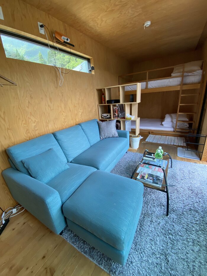 室内設備:エアコン(冷暖房) 、2段ベット(サイズ:ダブルベッド W:1400 D:2100)、シャワールーム、水洗洋式トイレ 、WiFi 、冷蔵庫(46L) 、電気ケトル、ドライヤー、サーキュレーター 、バスタオル人数分、ブランケット、ボードゲーム(トランプ、UNO、ジェンガ) 、単焦点プロジェクター (BenQ GS1) 、Bluetooth スピーカー(Bose) 、カトラリー 4人分(食器、コップ等) 、ソファー 、コルク抜き、包丁、まな板、キッチンバサミ、ピーラー、調理器具、トング(BBQ用)