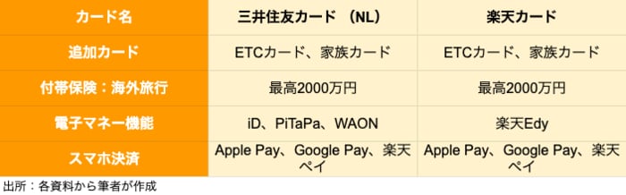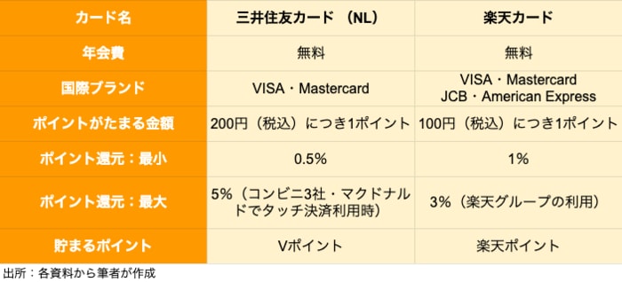 「三井住友カード(NL)」と「楽天カード」を徹底比較