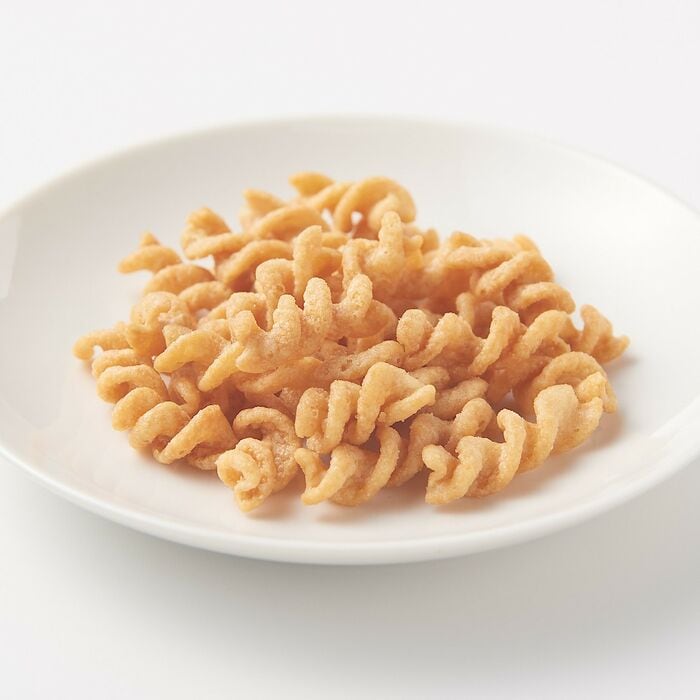 メディアでも紹介され、人気の高いお菓子です。小麦粉の量を減らすことで低糖質に仕上げています。少し固めのカリッとした食感が特徴で、口寂しいときのおやつにぴったり。香ばしいチーズ味のほか、スパイシーな「パスタスナック カレー味(税込150円)」もありますよ。