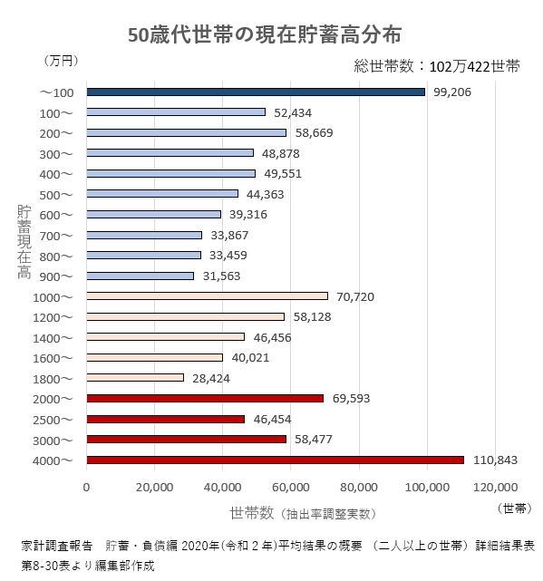 40歳代・50歳代世帯「貯蓄額の分布」はどう変わる?