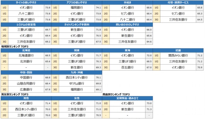 ネットバンキング部門では、イオン銀行が、3年連続で総合1位を獲得しました。