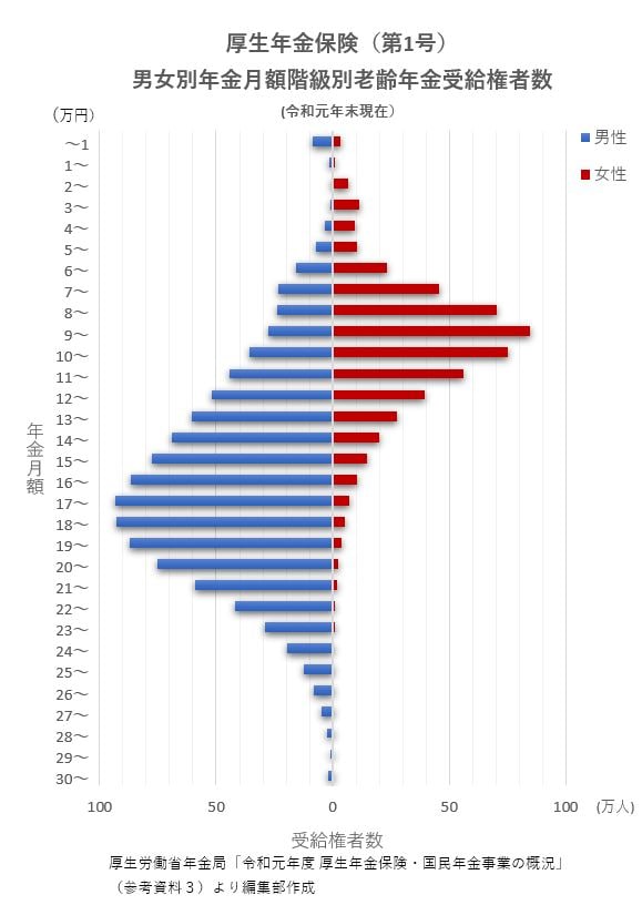 厚生年金【男女別】年金受給額分布