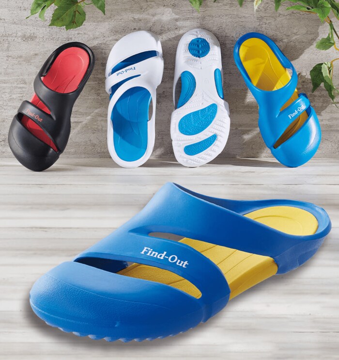カラーはホワイト・ブラック・ブルーの3色を展開。どれもさわやかなカラーとなっています。弾力の違う2種類のEVA素材を使用しているため、適度なクッション性を実現。つま先を包み込む形も評判です。価格は税込980円。1日のリラックスタイムやご近所へのおでかけ、室内履きなどゆったりした空間で使えそうですね。
