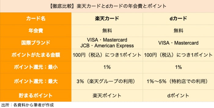 「楽天カード」と「dカード」を比較